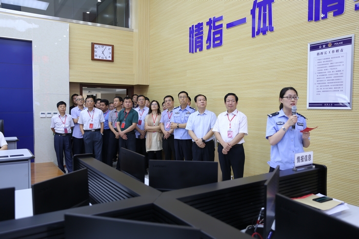 7月17日,全市平安建设现场推进会与会领导观摩博山公安分局“雪亮工程”及智慧警务云平台建设情况。市委常委、政法委书记韩国祥出席并带队观摩,市公安局、市信访局等市直有关部门负责人,各区县委政法委书记、综治办主任共50余人参加观摩点评。区委副书记、区长聂玉彬,区委常委、政法委书记杨玉峰,区政府党组成员、分局党委书记、局长罗光友,政委祁波陪同参加活动。 与会领导现场观摩了博山公安分局近年来“雪亮工程”建设情况及智慧警务云平台功能演示,对分局依托“雪亮工程”的海量资源,自主研发智慧警务云平台,并将各类警务资源整合到一张图上,在反恐维稳、侦查破案和服务民生中发挥的重要作用给予了充分肯定。分局智慧警务云平台项目入选“2018年博山区第一批创新改革示范点”, 6月15日全区创新改革示范点现场观摩会在分局召开,被列为全区“改革七星”重点项目。 | |||
